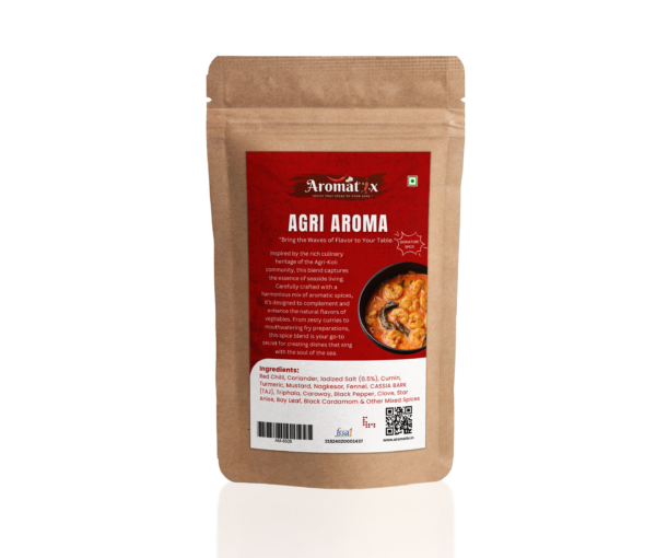 Agari Aroma (Aagri Masala) is a unique blend inspired by the bold and rustic flavors of Agri cuisine. This masala is specially crafted to enhance the taste of seafood dishes, from tangy fish curries to spicy prawns and roasted crab. Infused with the rich essence of coastal spices, it brings a perfect balance of heat, tanginess, and aroma to your meals, reflecting the authentic taste of Agri coastal heritage.